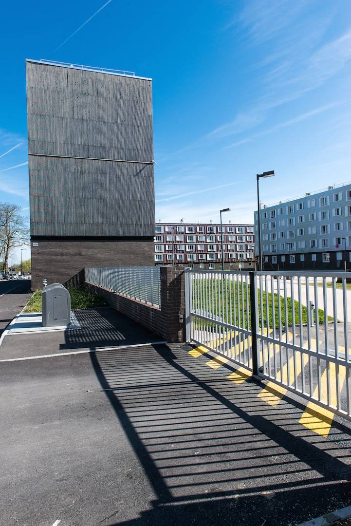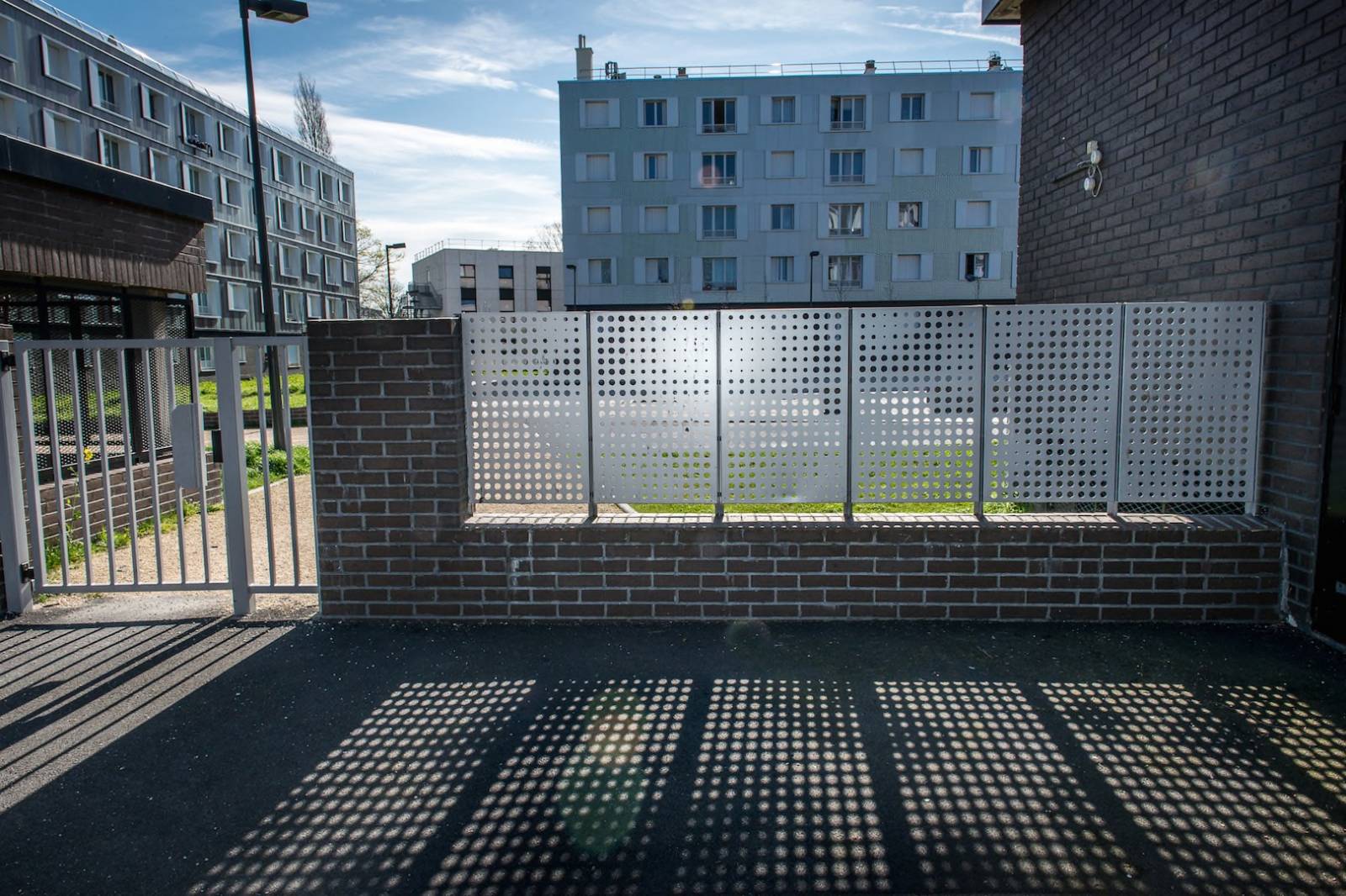 de clôtures en tôles aluminium perforées et d'un portail automatique au Havre dans la résidence Paul Bouchez.