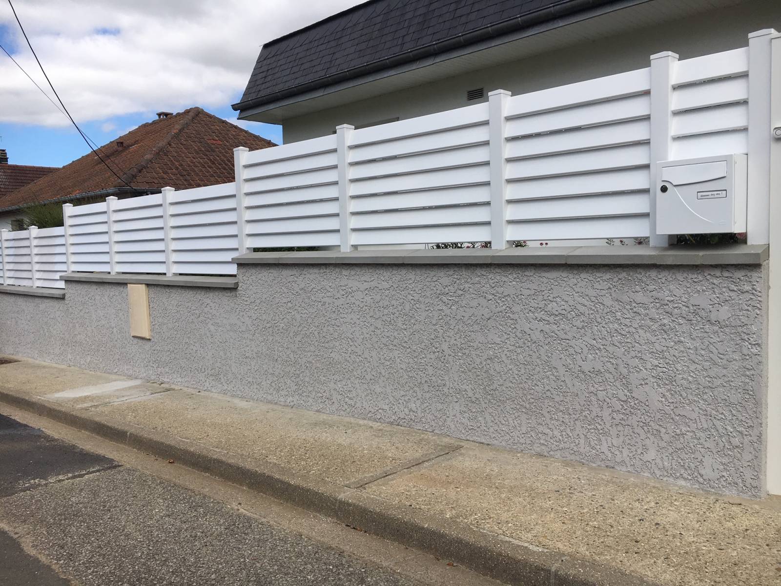 Le muret est prévu pour y installer une clôture assortie au portail choisi (PVC, Alu, Acier), avec une possibilité de pose sur platine ou par scellement.